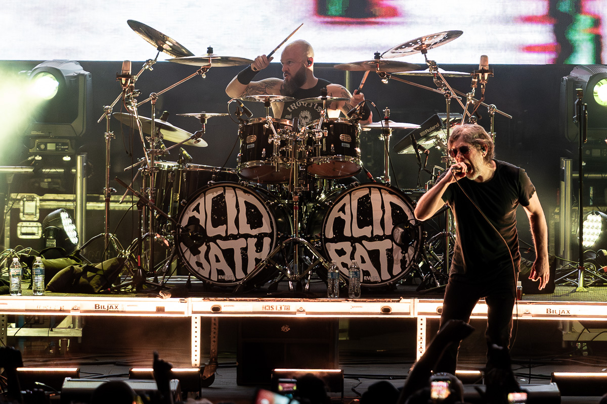 The psychedelic light show by Slim Reaper fit the vibe just right and brought the adoring crowd into Acid Bath’s house of horrors, with insane visuals that projected the band’s mythos into discernible abstraction. With a mere hour of stagetime, fans were seen giving it all they had, singing along and emotionally feeding the band regardless of age. People have wanted to hear these songs live again for decades running, and they were getting their fill in a city that still takes metal of all genres with utmost seriousness. Acid Bath is all business onstage with no story-telling or stage banter, but their excitement is palpable at every turn. These songs are still special to them, and the way they still approach them like it’s still their 90s heyday gives hints for more to come, or so we can hope. If the stages stay massive (they will) and the fans keep coming (they will), the Acid Bath renaissance will continue on its vicious warpath.